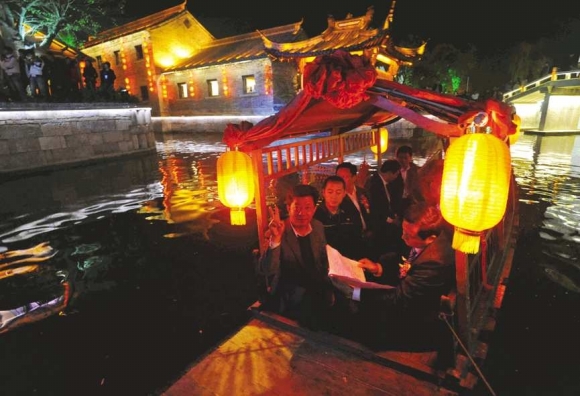 一场鼓乐秀《鼓舞古城 炫彩水乡》过后,颁奖晚会正式拉开帷幕。各获奖单位代表在工作人员的引领下乘坐游船慢慢划行至舞台领取奖牌。本次山东分榜评选共评出代表山东旅游品牌的91个单位奖项和12项个人奖项,其中枣庄、青岛、济南获得“荣耀山东———年度最佳旅游城市”,沂水、滕州、招远等县(市)获得“县域旅游十强”,沂水县副县长范春生、鲁汉集团(金象山旅游)董事长张汉等5人获得“年度旅游领军人物奖”,九如山瀑布群等5家景区获得山东旅游最美生态山水景区,山东嘉华文化国旅、山东省中国青年旅行社等获得2010年度十佳品牌旅行社。