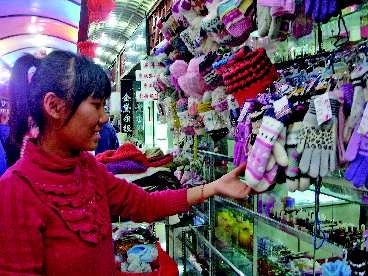 随着天气的转冷,手套、围巾等摆上了精品店的最佳位置,喜羊羊、大白兔等款式多样的手套受到年轻消费者的欢迎。图为10月25日,—女孩挑选粉红色保暖手套。