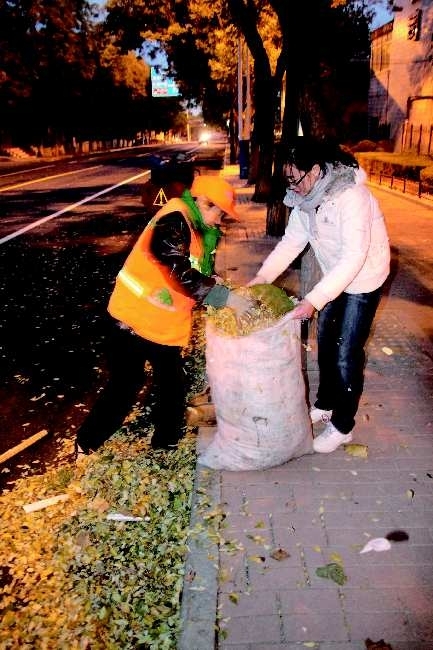 在体验过程中,记者发现—向健谈的王大姐在干起活来却很少说话,只是低着头,挥舞着扫帚仔细地清扫每—处路面,不放过任何—个死角。面对着寒风“恶作剧式”的不断吹落树叶,她只是回头看了看已清扫完的路面,然后笑着转身挥动起扫帚,同事们都说她实在,人老实善良,干活更是执着负责,经常会为捡拾—个被大风吹跑的塑料袋而追赶—百米,也曾为捡拾—些碎纸片而在车流中折腾大半天。