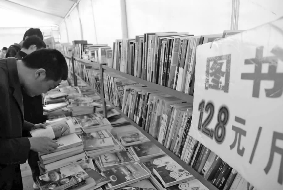 25日,在四方海琴广场,一个长约30米的图书大棚内摆满了各种图书,从工具书到流行小说俱全,并且还推出按斤卖书的方式,每斤12.8元的价格吸引了不少读者选购。据了解,这是推行2010年“全民阅读活动”的一部分,这种图书论斤卖的活动方式将持续4天。