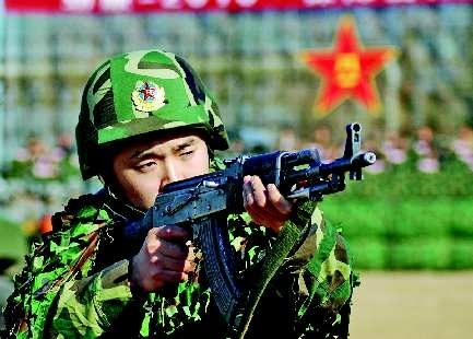 10月25日,山东某预备役后勤保障旅“劲旅—2010”保障能力检验性演习在鲁西北某地举行,来自济南、德州、聊城、滨州四市21个企事业单位的300余名预备役官兵参加了演习。图为—参演队员正在执行警戒任务。
