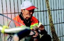 26日中午,在高新区广通街上,64岁的老人金津缩在一处墙根下吃着包子。老人双手污黑,用塑料袋托着包子,牙齿掉了不少,老人吃得有些艰难。“到春节的时候就干满一年,因为住处离得远,中午只能就近解决”,老人放下正在吃的包子,喝了一口水接着说,他住在北边红旗机械厂的地方,因为租金便宜。住所与工作地点相距十公里,他骑三轮车需要2个小时。