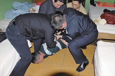 20日,城里派出所接到了110指挥中心指令,该所辖区某招待所有一名男子入住,极有可能是涉案在逃人员。而当民警赶到招待所后,却发现该男子王某只是进行了登记,并未入住。民警在招待所蹲守了3个多小时也未见王某身影。随后的几天内,民警对辖区的旅馆、网吧、游戏厅等场所进行了逐一排查,均未发现此人。25日16时许,城里派出所接到辖区某旅馆的报警,王某在该旅馆登记住宿,但仍未实际入住。城里派出所在该旅馆布置了数名警力蹲守,直至23时许,王某才潜回了旅馆。待王某进入房间后,数名民警一拥而上将其擒获(如图)。
