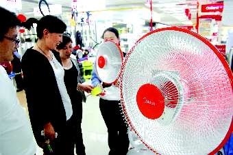 26日下午,在市区九州宜佳家商场,顾客在选购小太阳电暖气。由于近日气温突降,而市区还未开始供暖,因此各大商场内,电暖气、暖风扇、小太阳等取暖电器产品销售异常火爆。