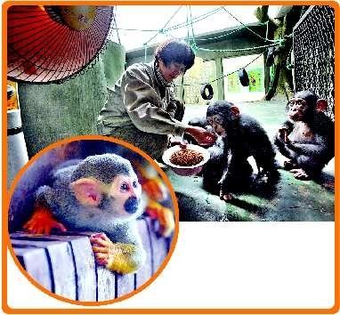 ▲26日,黑猩猩守着“小太阳”吃饲养员喂的食物。