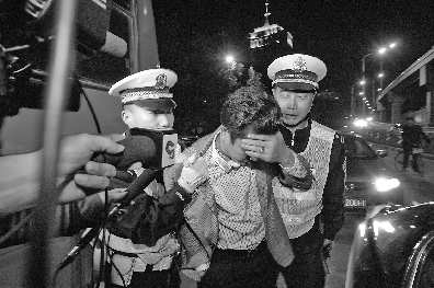 25日晚,记者随交警来到了位于经四路高架桥下桥口的检查点。晚8点45分,一辆黑色轿车正从主干道自北向南行驶,本不需要经过检查点,但车主发现执勤交警后突然停车,这引起了几位交警的注意。交警正准备上前检查,谁知这辆车竟在车流中加速向后倒车。后面都是在主干道上高速行驶的汽车,情况十分危险。几位交警立即冲上前拦下了这辆轿车,谁知该车刚被拦下车主便打开车门冲了出来,掉头就跑。一位交警当即上前将他控制住。