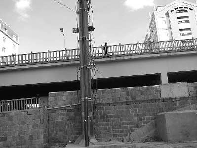 “当时人就从这个地方下来的。”在桥底下的四方区人力资源和社会保障局工作的保安方师傅告诉记者,事情发生在上午11时许,当时一名小伙子光着脚坐在桥的木栏杆上,别人问话他也不回答,坐了有十几分钟后,突然站到栏杆上,张开双手,面带微笑跳了下去。