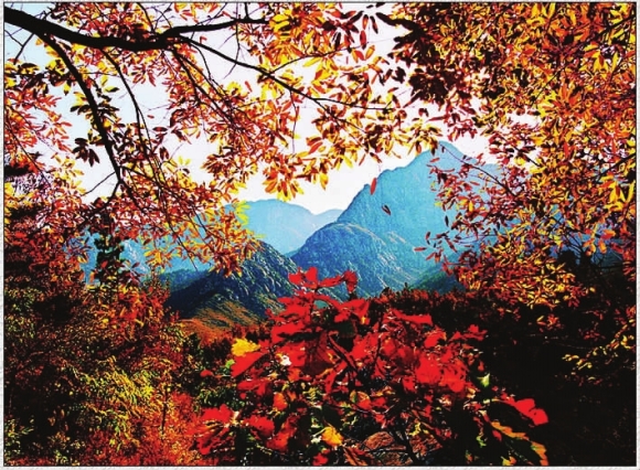 随着“寒露”节气的到来,渐浓的秋意使百里蒙山出现了色彩斑斓、层林尽染、山果飘香、秋景如画的美丽景色。一些植物的叶子由绿变黄,由黄变红,把秋天打扮得五颜六色、色彩斑斓。红红的山楂树果实累累,翠绿的叶子与红红的果实相映生辉,构成了一幅幅浑然天成的优美画卷。“一年好景君须记,正是橙黄橘绿时”,伫立在密密的树林中,举头望去,满是金色的树叶透出一片蓝色的天空。潺潺的小溪拂动着青山,丝丝云雾随清风飘散,仿佛置身于仙境。蒙山三季有花,鲜花依旧,而绿树却换上了七彩缤纷的秋衣,便有了另一番景象。深秋季节,步入金色的林海,脚踏满地的黄叶,和煦的秋风,吹来宜人的花香,令人不免沉浸在秋天的喜悦和畅想之中。