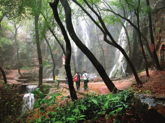 天下第一崮———抱犊崮。鲁南72崮之首,辞海等众多经典词典都以抱犊崮作为“崮”的诠释例证,其“君山望海”景色被评为枣庄“十大奇景之首”,是集国家级森林公园、国家水利风景区、全国农业旅游示范点于一身的4A级景区。森林覆盖率达97%,一立方厘米(即一个拇指大小)的负氧离子含量达7.2万个,被誉为“天然植物园”、“天然氧吧”。
