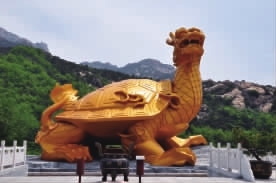 罗山不仅生态环境好,更是一座奇山,神奇的故事漫山遍野。先说神鳌广场,巨型神鳌通体镀金,高19.9米,重66吨,堪称天下第一鳌,目前正在申报吉尼斯世界纪录。而“双眼石”在半山腰处兀自长出,凌空耸天,无论晨曦夜月,双石都能同时反光,好似山的两只眼睛。千尺白练云屯顶大瀑布又被称为“四奇瀑”,一奇势高地险;二奇无源头无踪影;三奇多象形巨石;四奇水质奇好。据传说在700多年前,道教龙门派宗师丘处机曾在此修道,因常年喝此水而长寿。通天涧顶端的“莲花盆”更是神秘莫测,盆内之水深不足尺,却常年不枯,用此水润手洗面,还可祛病免疾,得交好运。更为神奇的是,这里还有一座“毛公山”,山体呈毛泽东仰卧之状,凌空辨去,清晰逼真。