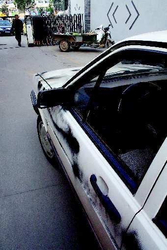 后面咋黑乎乎的?揉揉眼睛,我才发现俩后视镜被喷上了黑漆,身上也是一圈圈黑漆。而这已不是第一次了。