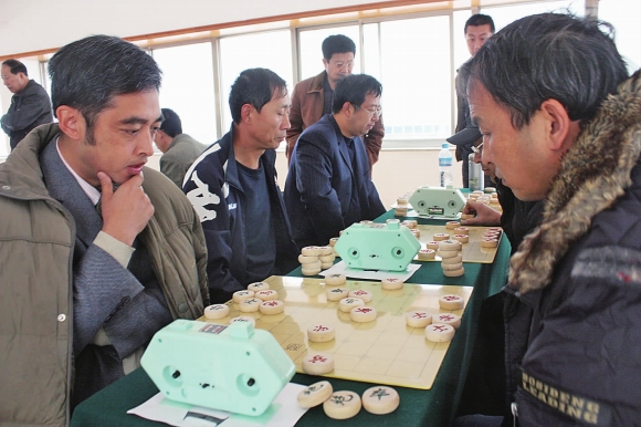 27日上午,“体彩杯”山东省第二届万人象棋赛威海赛区预赛在威海市成山体育场打响。全市50多名象棋高手会聚一堂,展开7轮循环大战,最终成绩排名前8位的将参加全省比赛。 本报记者 侯书楠 摄