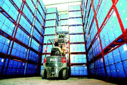 据蛇窝泊镇招商办主任张桂新介绍,目前蛇窝泊镇有大大小小的冷库80多家。在往年,这些冷库存储量一般最多能达到七成,然而今年,几乎所有的冷库都已经存储满了。裕鑫果蔬公司的存储规模在蛇窝泊镇算是比较大的,老板牟燕国告诉记者,自己5000多吨的冷库,目前已经存满了苹果。“比往年存得多……除了一些合作多年的老客户,今年不少本地果农也将苹果存进了我的冷库。”