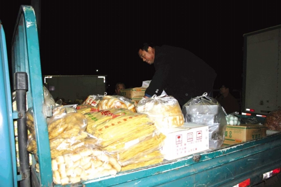 26日凌晨5时许,记者来到泰山农副产品交易中心,看到很多车辆停在一个大型停车区,客商们正忙碌着向车厢内配装货物。宁阳县华丰镇的白林强一边忙着装货,一边向记者介绍他采购的各种物品。“今天采购了一万多元的货物,涉及腐竹、鸭蛋、面饼等等多个种类,这些大多是饭店需要的食品。从这个市场开业,我就把它作为固定的批发地点。从宁阳到这里单程也就一个多小时,一站式采购所需物品比较方便。”白林强告诉记者。在车上装货的满庄镇唐先生见到记者,乐呵呵地说道:“别看我今天选购了一万多元的货物,并且涉及多家商户,但从停车后没有多走半步路,他们都是送货到车上。”