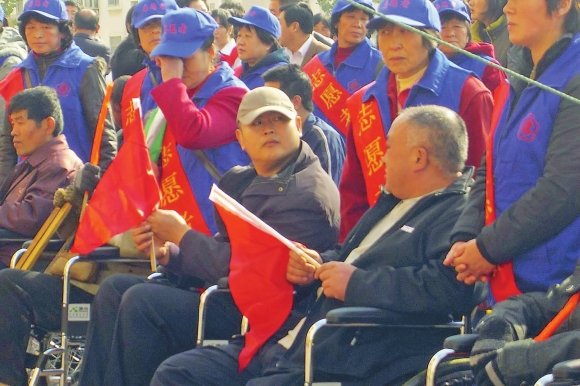 当天上午,环翠区残联在温泉镇政府举办了“爱心助残威海行”活动。活动启动现场,威海东城国际公司向环翠区残联捐赠了5万元的爱心款,并为40名残疾人发放了20台轮椅、20台助行器。该公司还为6名因父母残疾家庭贫寒的学生发放了助学金,每人2000元。随后,240多名残疾人和60多名助残志愿者分别乘坐6辆大巴车,开始了市区一日游。一位下肢残疾的先生说,“因为腿脚不便,我已经十几年没到市区来转转了,感觉威海的变化真大。”在游玩了幸福公园和葡萄滩海水浴场后,大巴车又将他们载到了仙姑顶风景区,让这些常年难以走出家门的人们与世界上最大的玉石仙姑像来了次亲密接触。