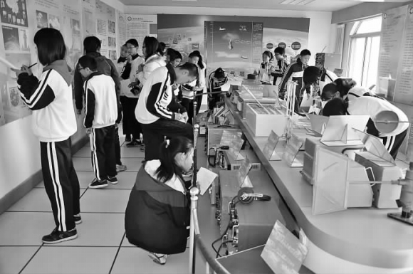 27日,威海十中举办科普系列活动,老师带领学生们来到威海市气象台实地观察学习。