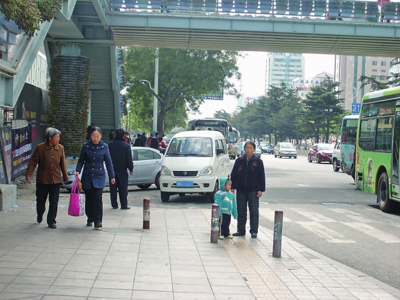 交警一大队汤警官告诉记者,每至周末,免费停车场位置不够,一些车主为了免交停车费,就直接把车停在路边。 本报记者 朱锦绣 摄