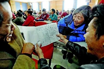 28日,济南市进行了第四次廉租住房实物配租摇号,1493户符合条件的低收入住房困难家庭获得了选房资格o在摇号现场,已经摇上号的家庭代表迫不及待地商议起了自己中意的户型o本报记者 王媛 摄