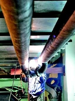 28日,历山路上—小区的换热站边,工人们在进行“汽改水”的最后施工。通过“汽改水”该小区有望在今冬真正暖起来,居民们不再受冻。
