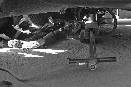 在事发现场,女孩和她的自行车都被货车撞倒压在车轮下,医护人员已经为她输上了氧气。货车驾驶员不知去向。消防队员钻入车底察看发现,女孩胳膊被压住,腿被自行车压住,于是立即利用液压剪剪断自行车,然后找来路过的铲车试图将货车抬起。