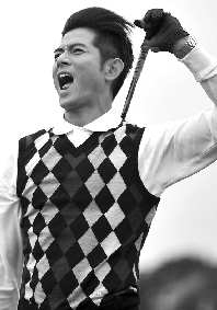 10月28日,香港明星郭富城在比赛中挥杆。当日,首届观澜湖世界职业明星高尔夫球邀请赛在观澜湖·海口国际高尔夫度假区举行,吸引了大批世界级职业球手和演艺界明星前来参赛。 新华社记者郭程 摄