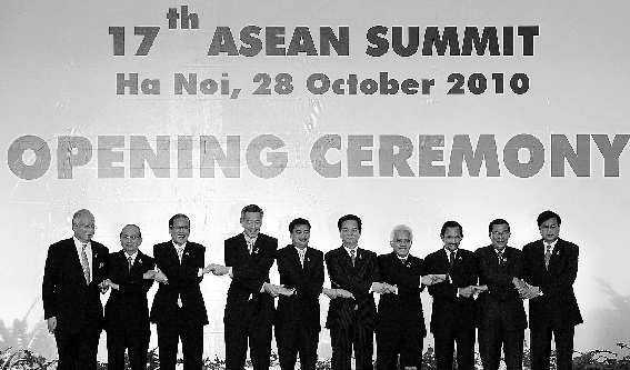 本报讯 第17届东南亚国家联盟(东盟)首脑会议28日下午在越南河内国家会议中心开幕。国务院总理温家宝当地时间28日14时许乘专机抵达越南首都河内,出席28日至30日将在这里举行的第13次中国与东盟领导人会议、第13次东盟与中日韩领导人会议、第五届东亚峰会和中日韩领导人会议。本次东亚峰会邀请美国和俄罗斯列席会议,有专家预测,在2011年第六届东亚峰会上,除了“10十6”成员国之外,还会加上俄美两国的领导人,形成“10十8”的新体制。