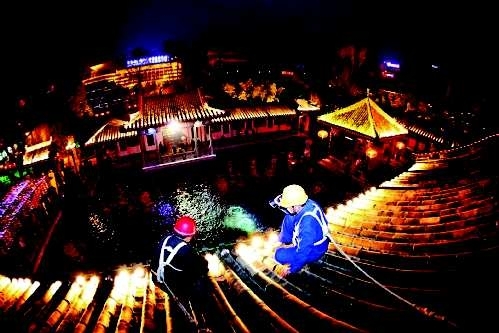 作品描述:节日前夕,电力员工夜巡趵突泉重要用电区域,确保用电安全。
