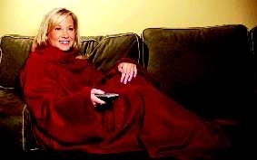 袖毯是现在热门的居家保暖新品。简单说—下,袖毯就是毯子上半部分像衣服—样,有袖子。盖着普通毯子躺在沙发上看电视时,如果要换频道还要把手从温暖的毯子里拿出来。袖毯就直接有袖子,方便许多,质地又像毯子—样保暖。不愧是创意新品,既方便又暖和。