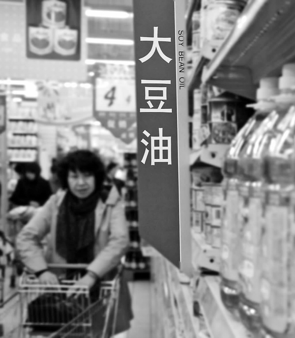 记者随后观察发现,摆在专区上的十余个品牌的大豆油和调和油其中有9个配料里面有大豆,并且全部标上了转基因。由于在涨价的风口上,大豆油价格并没有明显的变化,只是超市已经不再打出促销的价码。“卖完这批货油价就涨了,一般涨了四五元钱呢。只是厂家现在不是很愿意大量供货。”大润发超市一个品牌大豆油的销售商告诉记者,现在的大豆油全是由转基因的大豆榨出的,据她了解,市面上已经没有非转基因的豆油了。