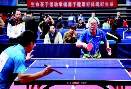 10月28日上午,2010年山东省高校教职工乒乓球比赛在聊城市体育馆开幕,三天比赛时间,分为团体比赛和单项比赛,共146名选手参加。图为淄博市技师学院代表队与东营职业学院代表队进行团体比赛。 本报记者 李军 摄影报道