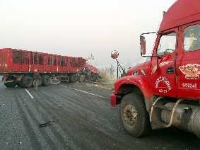 济聊高速路政大队相关负责人介绍,28日早上7时许接到报警电话称,济聊高速聊城西收费站约15公里处,两辆重型货车相撞。济聊高速路政大队、济聊高速交警大队和120救护车等陆续赶到车祸现场。当时,在济聊高速104K十960m北侧,一辆本地牌照的重型货车和一辆河南牌照的重型货车追尾,后面的重型货车擦着前车开过去,横在前面,车头冲出了高速路的护栏。货车驾驶室撞坏,前侧车厢撞得变形,司机受伤,部分车皮碎片撒在地上。