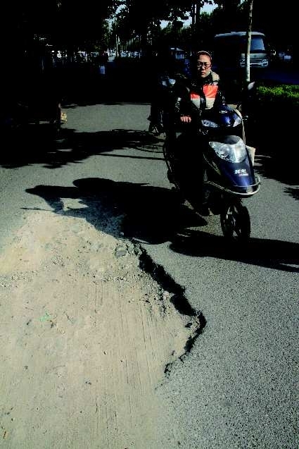 ①.27日,临沂市解放路中段,市民绕过路边坑o
