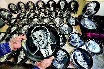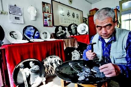 65岁的山东省民间手工艺制作大师刘效至今仍居住在市中区一处租来的旧房子里,30平方米的房子里摆满了一件件精美的刻瓷作品,不仅有中国伟人肖像(上图)和世界名人肖像刻瓷,还有花了3年多时间完成的历届美国总统刻瓷肖像(左图)等。