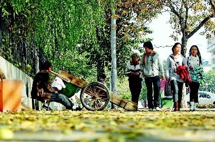 10月31日,在泺源大街北侧人行道上,金黄色的树叶随风落下,在深秋暖阳的照耀下,让人沉醉。虽然簌簌的落叶给环卫工人增加了劳动强度,但是不少市民认为,如果只清扫垃圾,留下满地落叶,反而会为城市街景增光添色。本报记者 王媛 摄