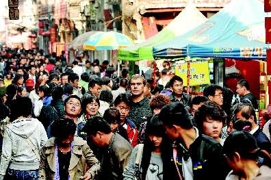 10月31日,在济南芙蓉街上,熙熙攘攘的游客让老街热闹非凡。当日正值周末,再加上连日来温暖舒适的天气,出来游玩的人们格外多。 本报记者 王媛 摄
