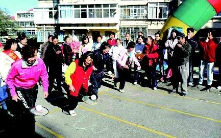 10月29日上午,为了丰富辖区居民的生活,奇山街道奇南社区居委会在小区举办了第二届趣味运动会,共100多名居民参加了这次比赛,年龄从20多岁到80多岁o比赛项目包括抱球跑、沙包投掷、跳绳、保龄球等o图为社区居民在进行托球跑比赛o