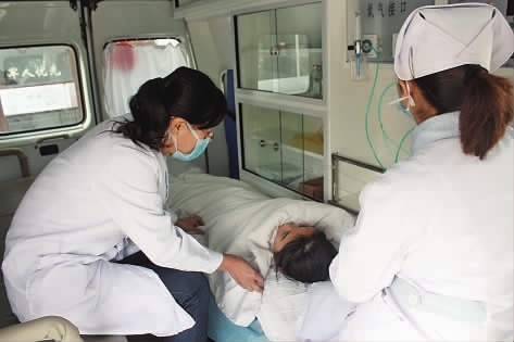 记者跟随医院人员进到病人家,只见他们迅速将担架放好,医生一边查看病人情况一边询问病人家属,在确认病人暂无危险之后,与护士以及病人家属一起将病人抬上担架。而早已等在楼门口的蒋师傅在听到一阵匆忙的脚步声后,赶紧上前帮忙,迅速地将病人抬到救护车上。整个过程迅速稳当,病人刚刚在救护车上躺好,家属与医护人员也几乎在同时各就各位。还没等记者从刚才的急救过程中反应过来,救护车已经驶出了华夏山庄。