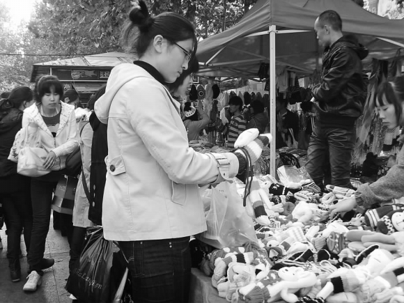 环球商场内,销售服装的董文芬表示,“现在年轻人购物大都只听价格,不看质量,自去年步行街开始摆摊后,我的生意明显比以前少了。”
