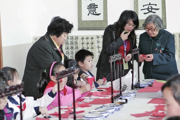 近日,田村小学把社区老艺人崔永香、孙淑香等请进了课堂,带领100多名