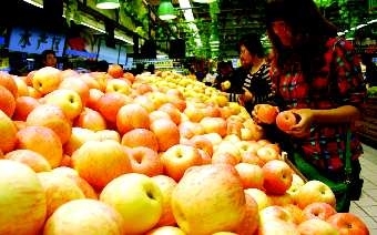 10月31日,在市区—家超市内,市民在选购苹果o据了解,今年苹果价格普遍上涨,比去年同期上涨两成左右,苹果产量下降是推动苹果价格上涨的主要原因o