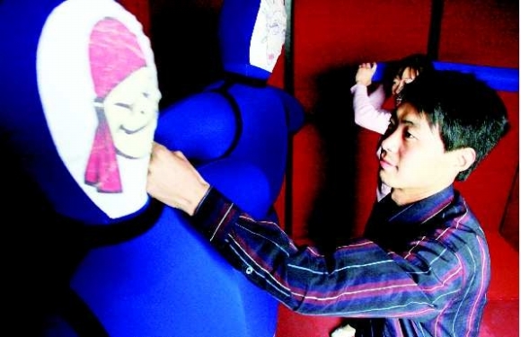1日,在潍坊市第三人民医院心理宣泄室内,两位市民正在对着“不倒翁”拳打脚踢。据医院周大夫介绍,为方便心理咨询服务和治疗的需要,医院专门设立了心理宣泄室。然而对不少市民而言,心理健康还没有引起足够的重视,对于“前卫”的心理疗法也比较保守。目前的情况是,电话咨询心理宣泄室的市民不少,真正来发泄的还不是很多。