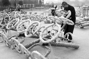 11月1日,运河四期附近,聊城市市政公用事业管理局的工作人员在清点刚购进的80套健身器材。据了解,为了方便市民健身、美化环境,运河四期附近将安装80套健身器材。 本报记者 邹俊美 摄