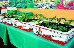 “这不是南方的火龙果吗?”在一处展台,三五枚火龙果和一块小小的说明牌引起了记者的注意。一问才知道,这家经营户今年刚刚将生长在南方的火龙果引种到章丘,目前苗子已经长到两米多,开始开花,但还没有结果,所以就先借用“外来”的火龙果在展会上宣传一下。