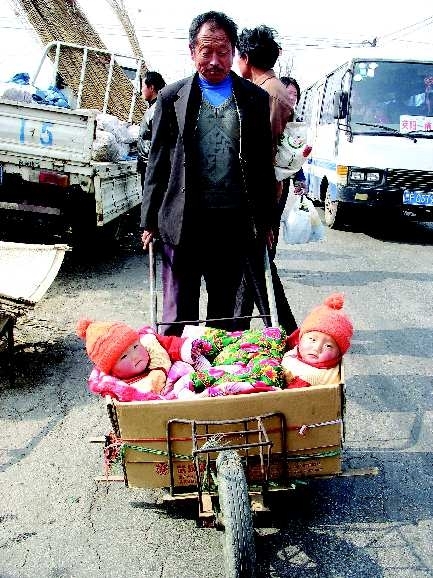 作品描述:—对双胞胎坐着“包厢”逛街。画面里哥俩睁着小眼睛,瞅着外面的景物,让人忍俊不禁。作者:孙瑞