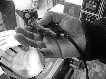 1日中午,记者在草桥口批发市场见到了受害者李萌,并跟随李萌一起去找电吹风机的销售商。路上李萌向记者简单介绍了事情的经过。10月30日,他洗完头发后使用“华科牌”电吹风机时,突然“砰”的一声,在电吹风机手柄和电线的连接处,一片火花冒了出来,把李萌的手掌电了一下,把一片手掌熏黑,李萌去医院检查,手掌幸无大碍。事后,李萌发现是因为电吹风机的电线短路出现的事故,当天他就找到了销售商,一位姓问的电吹风机业务员向李萌了解了情况,但至今也没有给出解决方案。