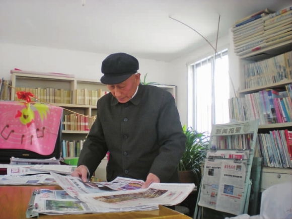 暖暖的阳光照着小书屋,四五人围坐在简易的沙发上,翻书、看报。2日上午,记者来到环翠楼办事处塔山社区的小书屋,管理员殷树山和居民们正在忙着剪报。“一年365天,殷书记至少有360天呆在社区书屋!”这是环翠楼办事处塔山社区工作人员对殷树山老人的描述。今年85岁的殷树山,已经为社区义务管理书屋整整12年。