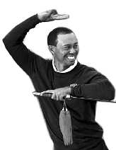 11月2日,“老虎”伍兹在上海外滩跟着武术老师现场学习太极剑招式。当日,菲尔一米克尔森、“老虎”伍兹、李一维斯特伍德和马丁一凯梅尔齐聚上海,参加将于4日开始的2010高尔夫世锦赛一一一汇丰冠军赛。新华社发