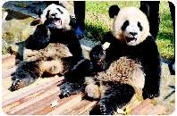 11月2日,两只来自中国大熊猫保护中心的大熊猫宝宝在广州香江野生动物世界长隆大熊猫中心室外运动场大快朵颐。广州香江野生动物世界从中国大熊猫保护中心引进6只1岁亚成体大熊猫,与动物园原有的6只大熊猫组成“亚运熊猫团”,在广州亚运会期间作为亚洲快乐的传播使者。