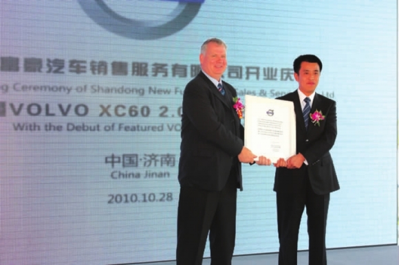 10月28日,沃尔沃(Volvo)汽车授权4S经销商山东新富豪汽车销售服务有限公司,正式开张营业。沃尔沃汽车中国销售公司网络发展总监爱德华专程来济,并亲自参加新店授牌仪式。