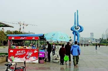 在泉城广场,一些人工售卖瓶装水、小食品、可乐等物品的小商摊生意倒还好。